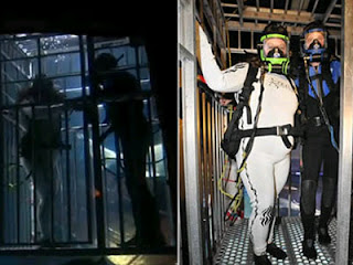 menyelam hitam. Mereka masuk ke dalam tangki ikan hiu untuk mengambil